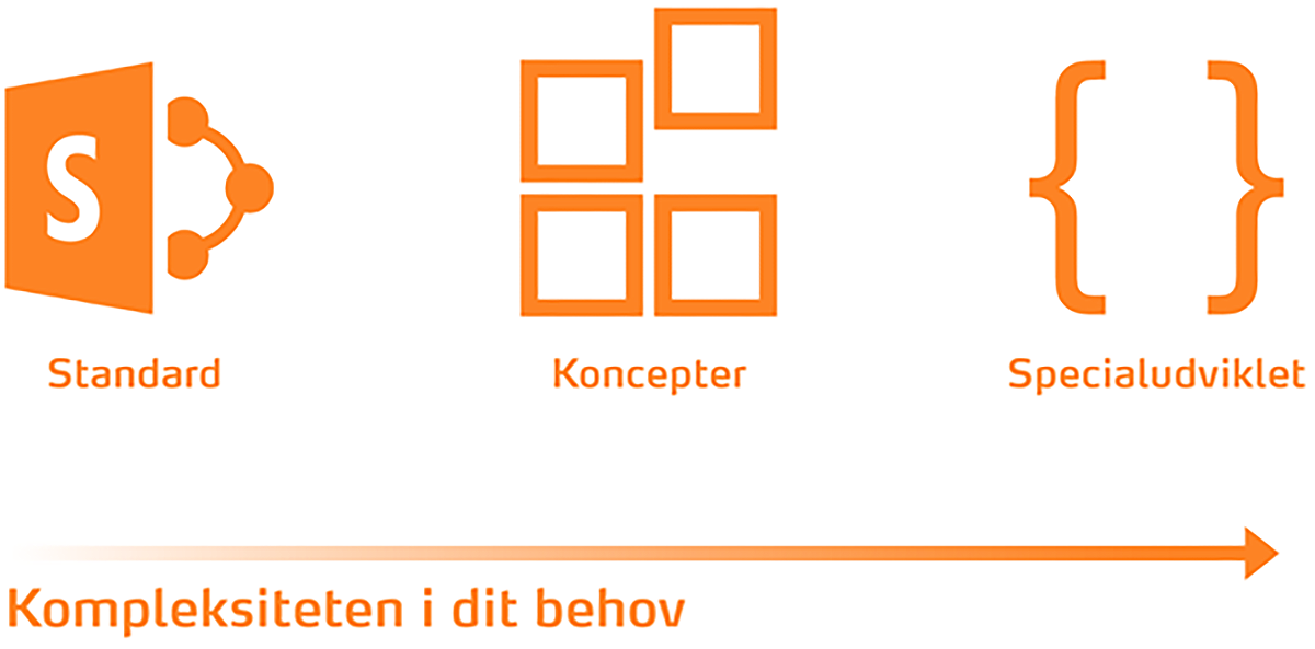Vi udvikler løsninger baseret på standard-SharePoint, vi har færdige koncepter, vi kan implementere hos dig, og så kan vi specialudvikle en løsning baseret på SharePoint til din virksomhed.